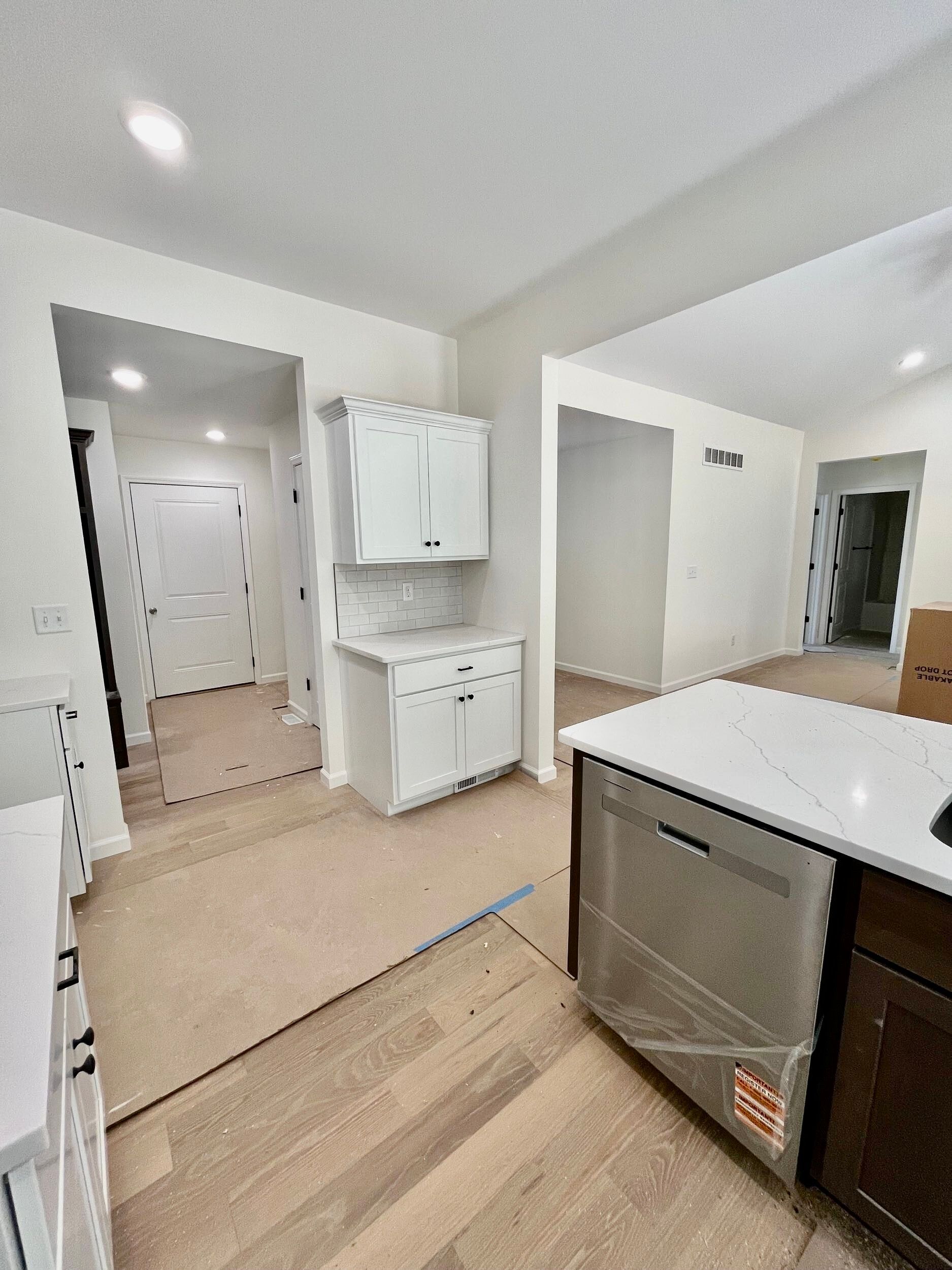 Enjoy engineered hardwood flooring in the kitchen, great room, laundry room, and hallways, with LVT in the bathrooms and plush carpet in the bedrooms. The basement includes a rough-in for a potential third bathroom.